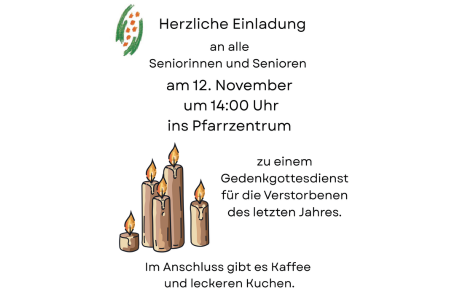 Unser Vorbereitungstreffen findet am Freitag, 14.11.2025, von 17:00 Uhr bis 17:50 Uhr im Pfarrzentrum statt.