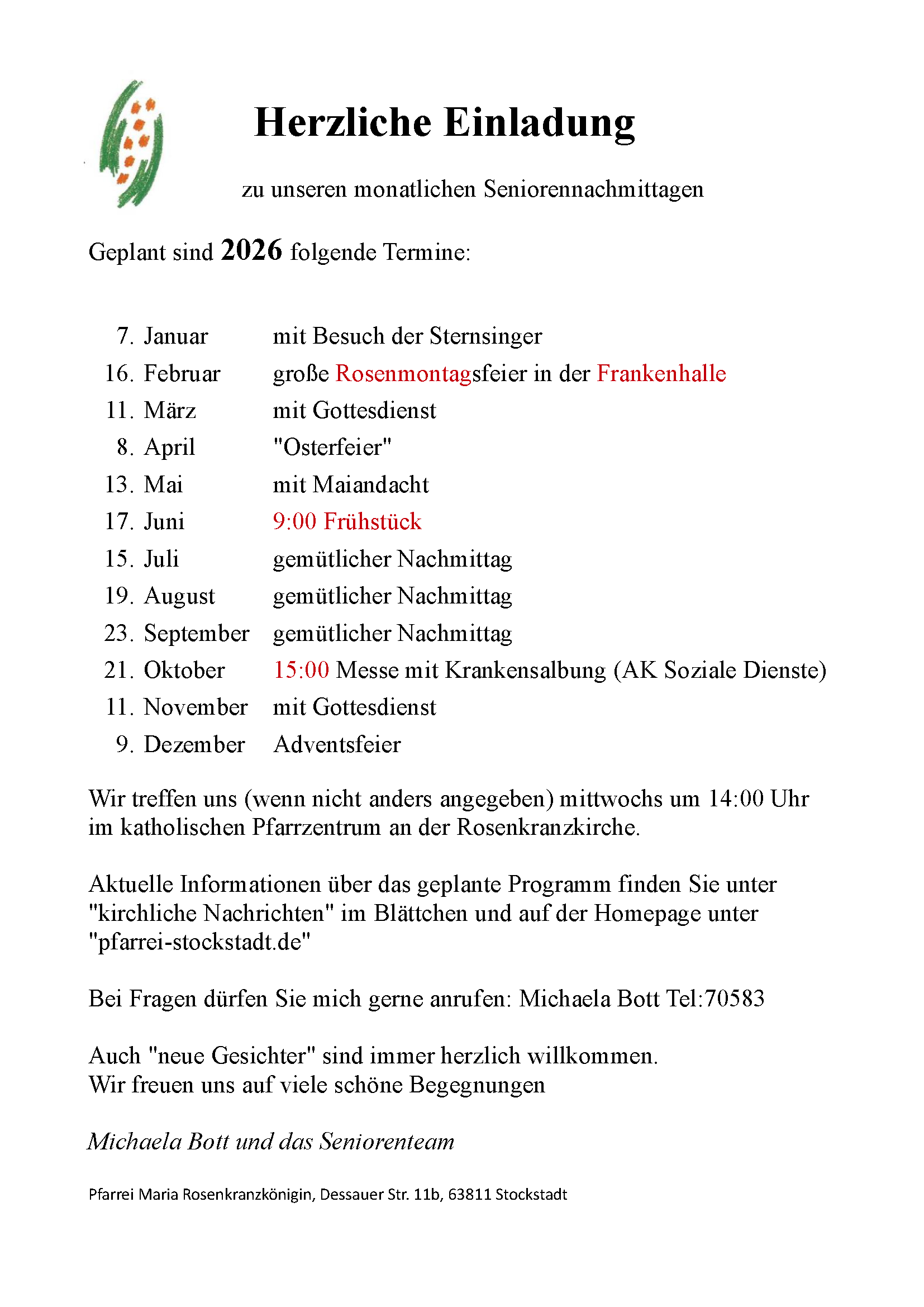 Seit 1975 gibt es in der Pfarrei Stockstatt die Seniorenarbeit;