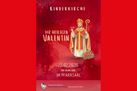 Am Sonntag, 22.02. findet um 10:00 Uhr im Pfarrzentrum die nächste Kinderkirche zum Thema: „Hl. Valentin“ statt. Herzliche Einladung!