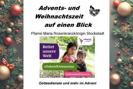 Die Frauen- und Müttergruppe der Schönstattbewegung lädt ein zu einer adventlichen Feierstunde am Freitag, 28.11. um 14.30 Uhr im Pfarrzentrum.